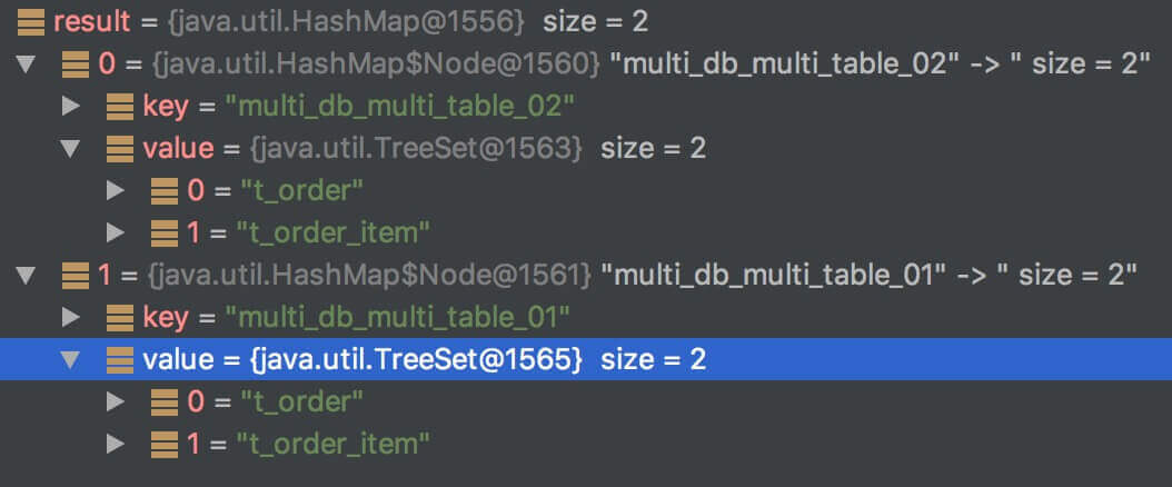 • #getDataSourceLogicTablesMap() 返回如图: